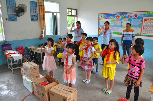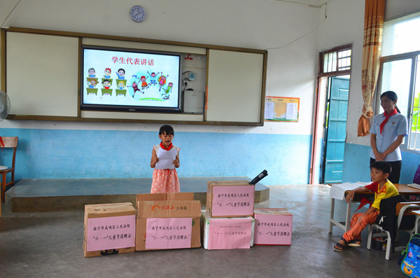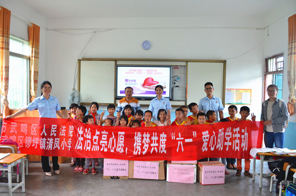 “我想要一个篮球”“我想打羽毛球”“我想买苹果吃” ……书包、篮球、苹果、羽毛球拍……这些普通平常的东西,却是一些贫困孩子不敢多想的心愿。为了庆祝六一儿童节,5月31日下午,我院党组成员、副院长谭芳兰、民一庭负责人黄成果、妇女儿童维权岗潘红玉法官一行代表我院工委和团支部来到我院扶贫挂点村武鸣区锣圩镇清凤村开展“法治点亮心愿,携梦共度六一”爱心助力活动。为清凤小学20名小朋友们送上慰问品,向5名困难儿童发放了慰问金,并把“微心愿”礼物带到了学校教室,亲手把礼物送给许下心愿的同学,用特殊的礼物和满满的爱心送去对孩子们的关怀。