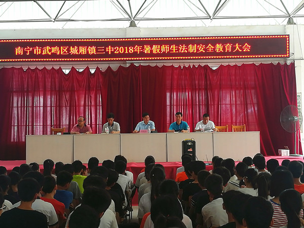 2018年7月6日上午,时值2018暑假前夕,我院刑事审判庭庭长邓殿熙来到城镇三中,给即将步入暑假生活的全体学生上了一堂生动形象、深入人心的法治教育课。